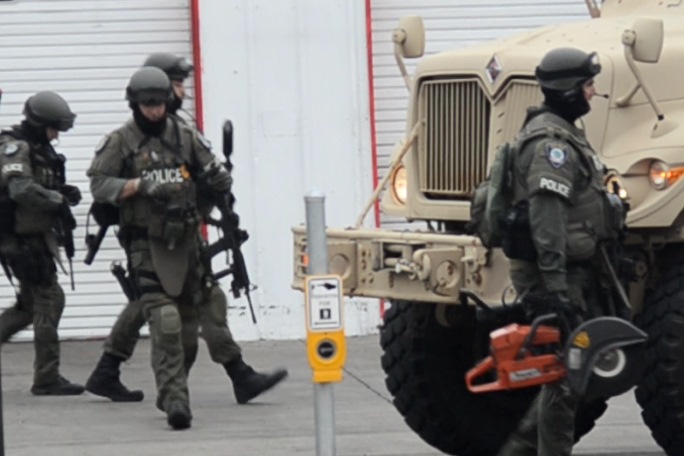 SWAT team members from the Citrus Heights Police Department armed with rifles, saws and other equipment were observed entering and exiting S&S Tire around 8 a.m., with CHPD’s recently acquired Mine Resistant Armor Protected (MRAP) military surplus vehicle parked outside.