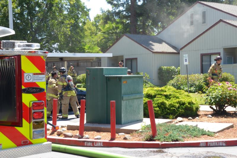 After receiving a call at 11:26 a.m., crews arriving to the scene found smoke showing from the apartment and were able to quickly contain the fire without damage to adjacent housing units in the Sunrise Oaks Apartment complex, according to Folsom Fire Department’s Acting Chief Chad Wilson, who was on scene assisting in the effort. He said crews had the fire controlled 11 minutes after receiving the call.
