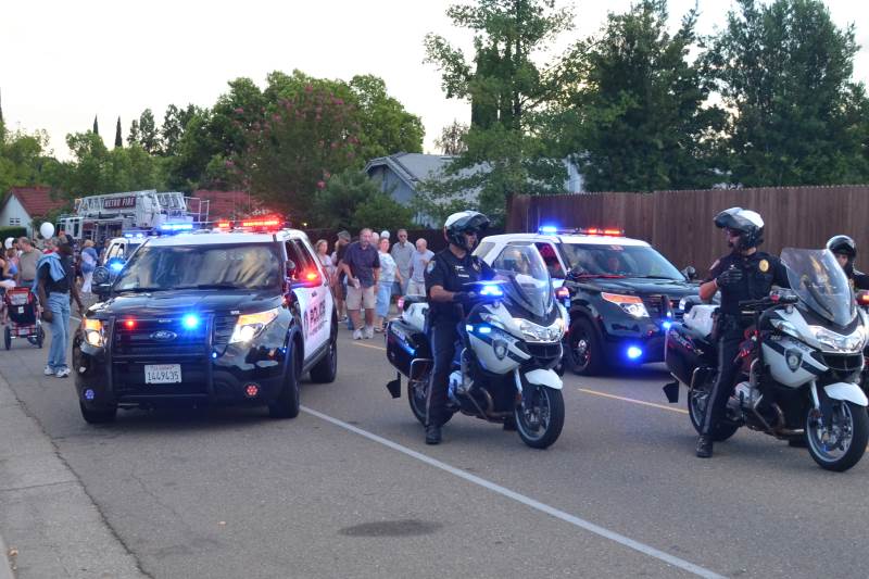 Jenkins’ neighborhood celebration included free ice cream from a sponsor and a small parade led by a half-dozen Citrus Heights police vehicles and a Metro Fire ladder truck in the rear. The three-quarter mile parade looped through the Greenback Wood area, ending back up at the corner of Indian River Drive and Clay Basket Drive.