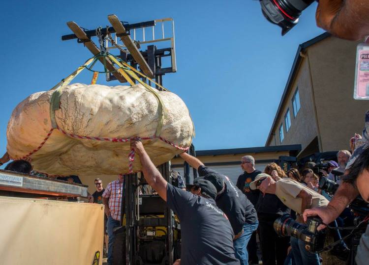 A brother-sister team from Citrus Heights was recognized this week in a world championship weigh-off for growing the largest California pumpkin entered this year, with the massive gourd requiring a forklift and special harness to be placed on the 5-ton industrial scale.