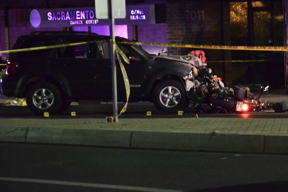 A collision involving a motorcyclist and an SUV closed down multiple lanes near Sylvan Corners in Citrus Heights, Friday night.