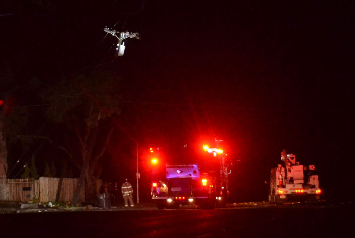 Police quickly blocked off Antelope Road and advised bystanders to stay away from the area due to the risk of the damaged pole falling. A SMUD truck arrived shortly after midnight and could be seen shining a light on the pole, which was leaning over, although still mostly upright.
