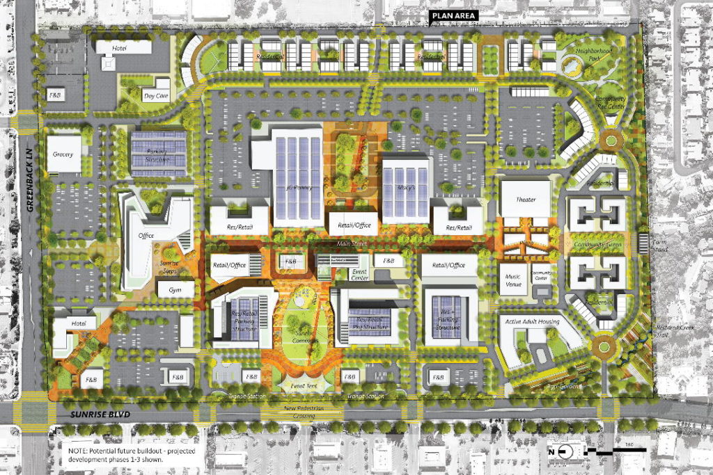 Will there be a safe walking path for “mall walkers” to continue to use? “The Sunrise Tomorrow Specific Plan includes a ‘Green Loop’ around the entire project for walking and biking in addition to expanded sidewalks for a safe, walkable environment.”